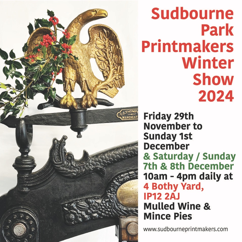 Art for sale, etching, Exhibition, greeting cards, landscape, linocut, Print Making, Sudbourne Park Printmakers, Suffolk, UK, woodcut Winter Show Posted by Susan Whatling on November 13, 2024 Lots of wonderful new original etchings, woodcuts and linocut prints including a range of greeting cards! We are 30 members exhibiting and look forward to you joining us soon! Share this: Share on X (Opens in new window) X Share on Facebook (Opens in new window) Facebook Like Loading... Related
