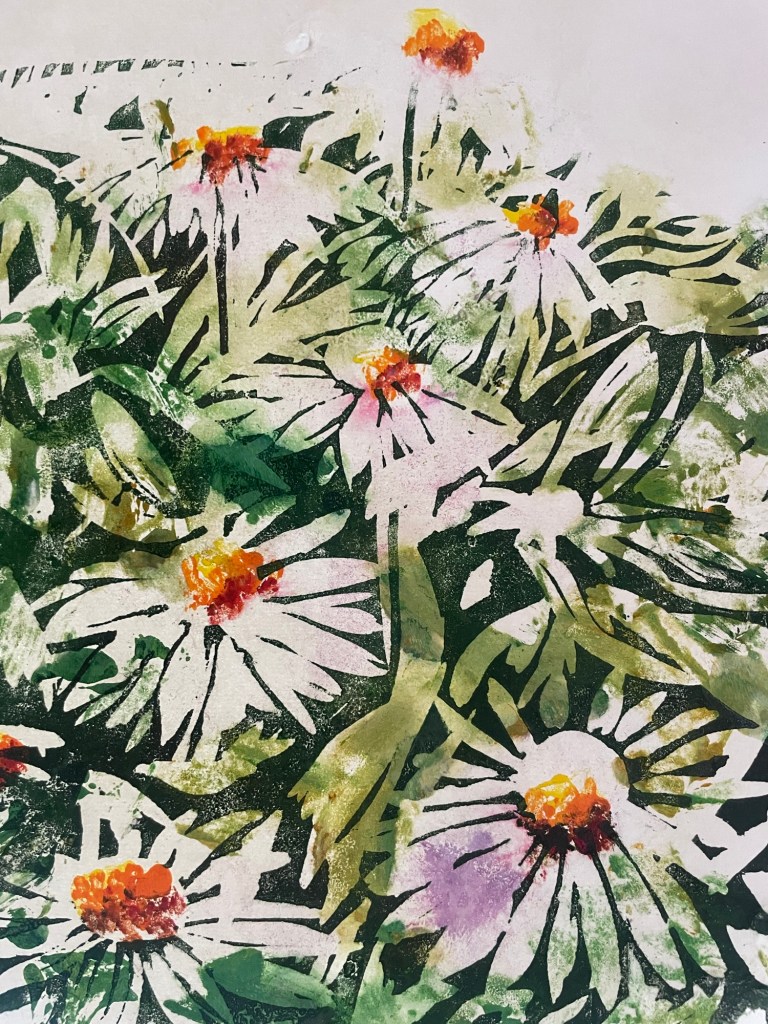 My love of the unexpected outcomes in printmaking is what holds my interest. Pushing the boundaries of overlapping ink gradients to a painterly finish. Will the previous layer peer through?